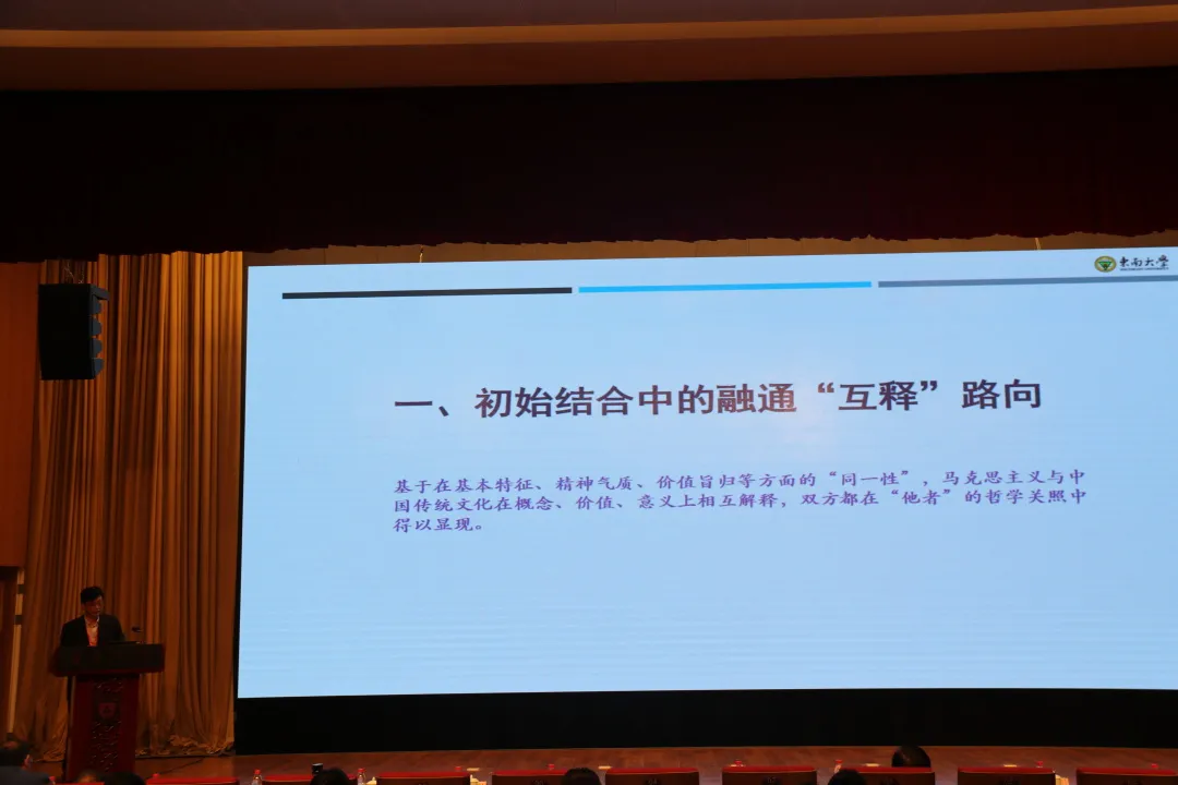 院长田芝健教授以“马克思主义中国化与中华文明马克思主义化”为主题,汇报了“中华文明马克思主义化的概念界定和内涵解析”、“马克思主义与中华文明融合创新有机统一的成果表达”以及“马克思主义中国化和中华马克思主义化的辩证关系”三个问题。