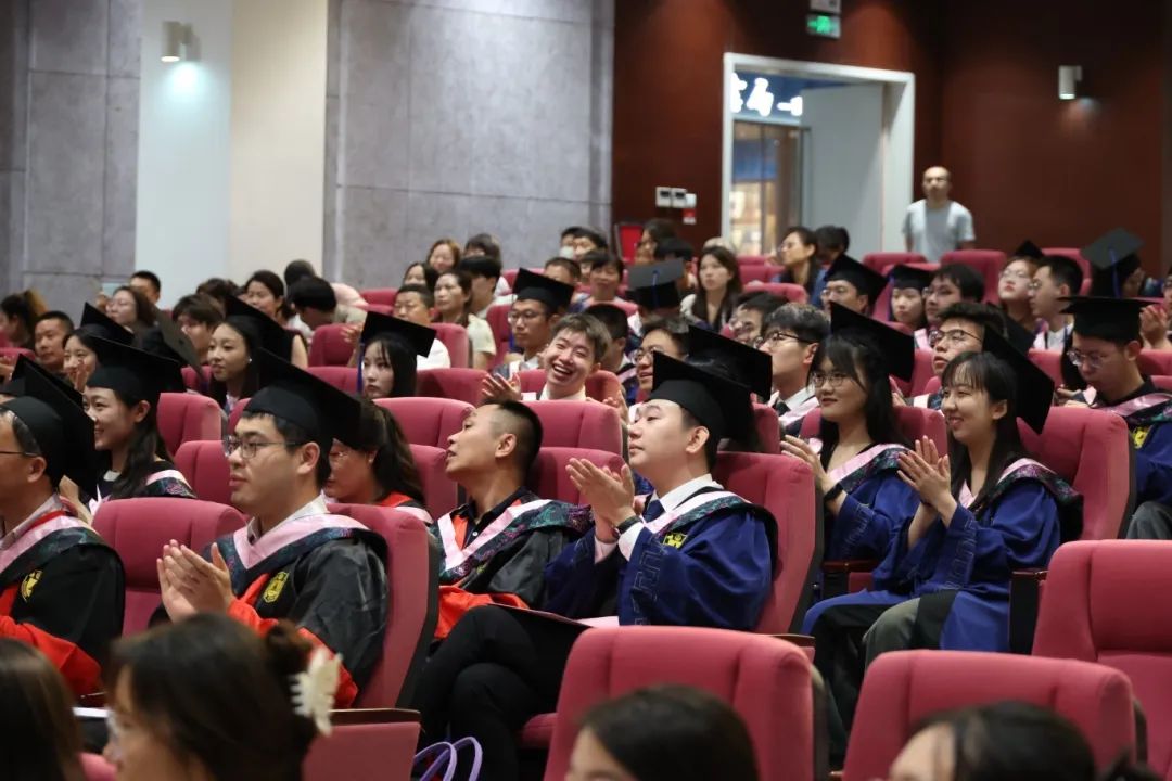 学院党委书记时昱老师为典礼做总结讲话。在这不舍与幸福交织的时刻,时昱老师祝贺毕业生们开启新征程,也祝贺家长们完成培养重任。临别之际,时昱老师向同学们分享三点人生感悟:第一,大胆追求热爱,珍惜当下,不留遗憾;第二,善意面对坎坷,视困难为成长的财富;第三,认识人生的立体与多面,活出幸福饱满的人生。最后,时昱老师诚挚祝福大家毕业快乐,并欢迎大家常回母校看看。
