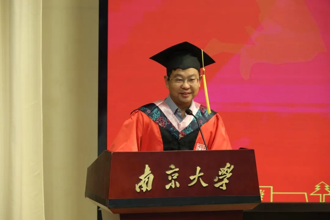 师泽若水,润物无声。在见证南马学子完成学业、开启新程的仪式后,教师代表登台为毕业生送上诚挚祝贺与殷殷嘱托。王明生老师寄语同学们既要永葆信仰之光,做真理的守护者与实践者;更要锤炼过硬本领,做时代的奋进者与开拓者。须胸怀家国天下,勇担民族复兴大任;亦要常怀感恩之心,成为温暖而坚韧的南大人。戴雪红老师寄语同学们当涵养“仙气”“灵气”与“底气”,“仙气”与“灵气”,贵在静心持守——正所谓“静则得之,躁则失之。灵气在心,一来一逝,其细无内,其大无外”,而“底气”则源于母校的鼎力支持、师长的言传身教以及同窗的深厚情谊这三重坚实根基。熊秋良老师以“金字塔”“塔基”和“塔尖”为关键词,认为南大如同一座底蕴深厚的金字塔,成人导航