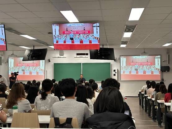 沈伯平教授重点讲解抗战阅兵的背景,同时结合毛泽东的《论持久战》论述如何打好新时代中国高水平科技自立自强这一“硬仗”并以此弘扬伟大抗战精神。他结合习近平总书记论中国梦的三句话:中华民族的昨天,“雄关漫道真如铁”;中华民族的今天,“人间正道是沧桑”;中华民族的明天,“长风破浪会有时”,讲解当代大学生在强国建设和民族复兴伟业的担当与责任。最后沈伯平教授勉励新时代大学生“心中有理想、眼中有光芒、脚下有力量”,要以“踏石留印、抓铁有痕”的求真务实精神,实现习近平总书记在9·3阅兵式讲话中提出的“中华民族伟大复兴势不可挡!人类和平与发展的崇高事业必将胜利!”的伟大奋斗目标。全课程在双方学生的热烈掌声中结束。