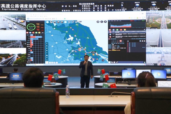 宣讲队成员有序参观,由对方宣讲员首先简要介绍江苏高速公路联网运营管理公司的大体情况。紧接着,由当天值班长周胜同志引导 成人导航