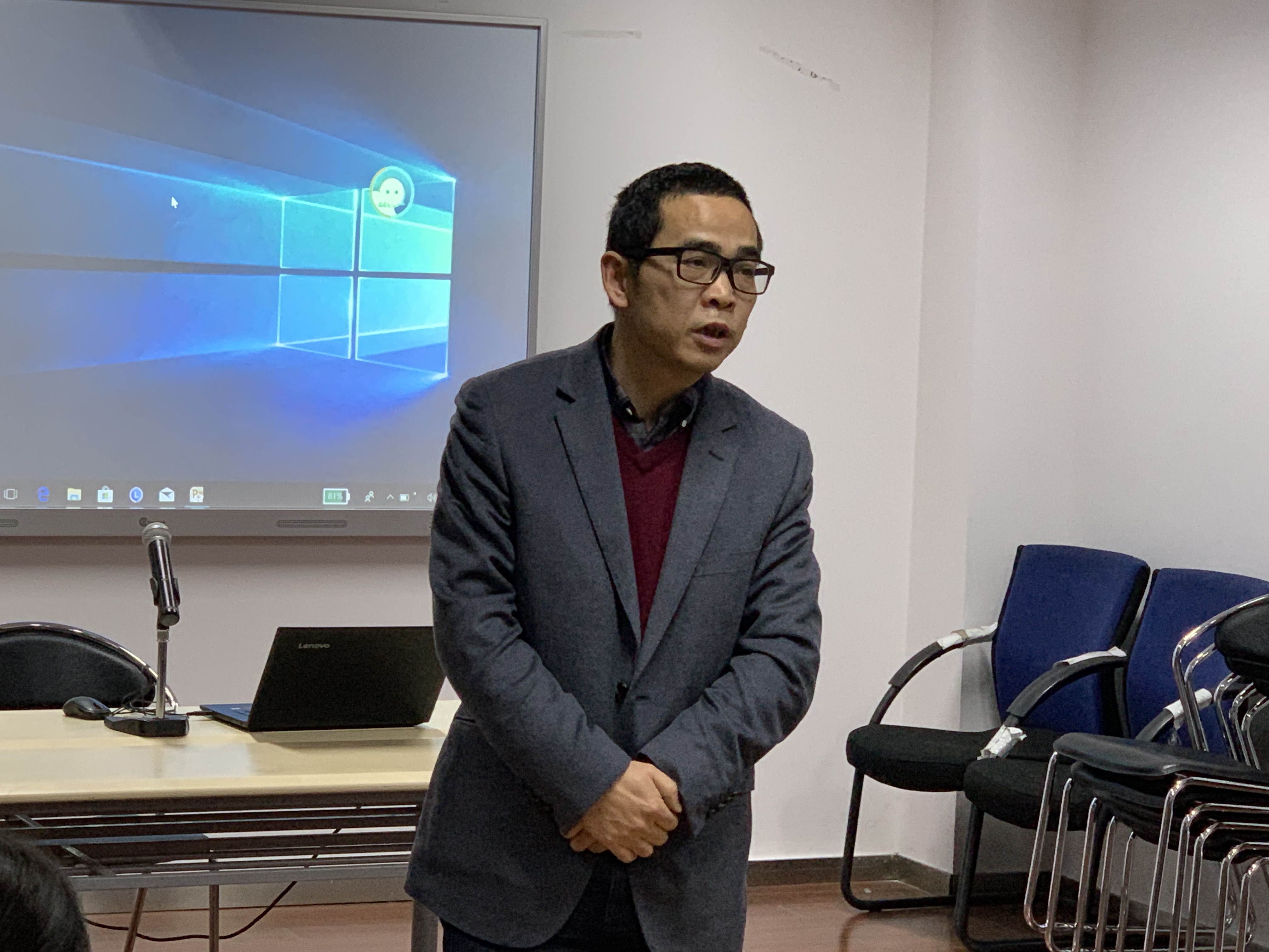 教务处处长徐俊、教务处科长沈志成对学校教学管理规定进行解读,教务处教师吕筠讲授PPT制作技能,成人导航