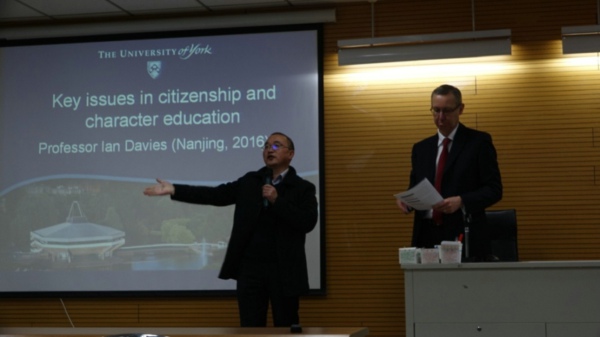 伊恩·戴维斯(Ian Davies)是英国约克大学教育学院副院长,教育系主任,教育与社会公平研究中心主任;他是教育学和欧洲公民教育方面的资深专家,同时还是香港教育研究院的客座教授,也是日本社会科学院的特聘专家;他曾出版了15本专著,发表了多篇学术论文;他同时任教本科、硕士和博士课程;他曾是《公民教育教学研究》的主编,现在是副主编;他的主要研究方向为公民教育、全球教育、全球公民教育、历史教育、社会科学教育等。在公民教育相关问题的讲座中,戴维斯教授主要从公民教育的关键内容,公民教育的背景环境以及公民教育向品格教育的转化三个方面为我们介绍了英国公民教育。