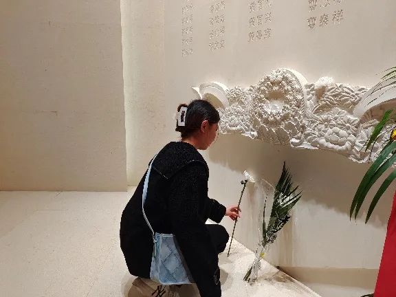 跨过纪念桥,同学们来到雨花台烈士纪念馆参访学习。在纪念馆序厅,“信仰的力量”五个火焰般的大字昭示着雨花英烈的精神气魄,两旁雪白的石碑上镌刻着1519位烈士的姓名。在石碑前,同学们依次向革命烈士敬献鲜花,深切缅怀为民族独立和人民解放献出生命的革命先烈。