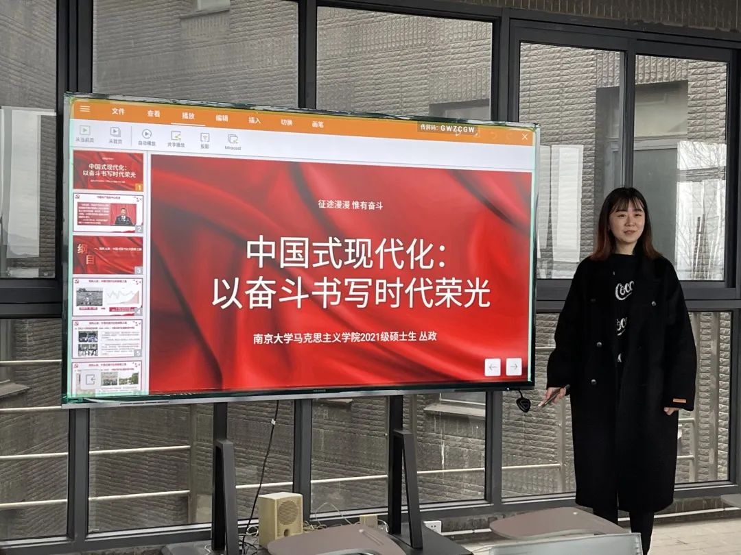 参观活动结束后,大家来到会议室,我支部丛政和冯名瑶同志围绕“中国式现代化”,分别作《中国式现代化:以奋斗书写时代荣光》《深入把握中国式现代化的五大特征》的主题宣讲。随后,两支部党员围绕科技强国、乡村振兴、人类命运共同体、人口红利与人才红利等问题展开积极讨论,现场不时响起热烈掌声。