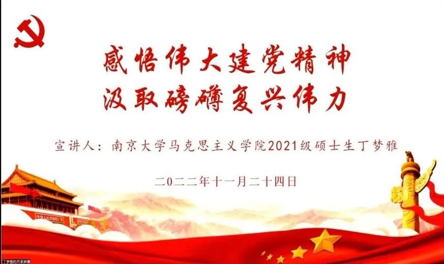 2021级硕士生第一团支部邱友亮同志主持,五个支部相聚“云端”围绕党的二十大依次进行主题分享。