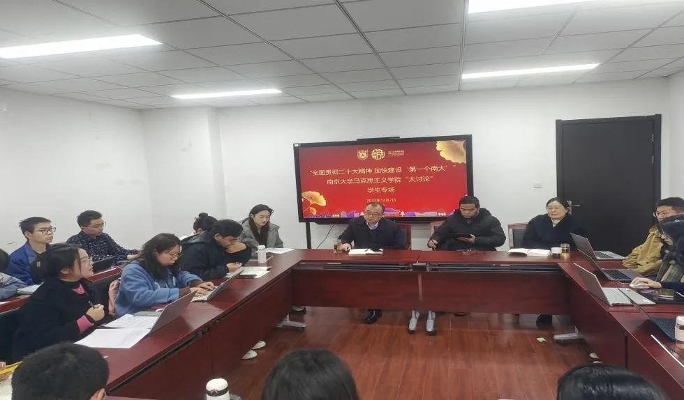 如何发挥重点学科的独特优势,立足于人才培养和创新发展,加快建设“第一个南大”表达了观点。三是落实立德树人根本任务,同学们对如何发挥马克思主义理论学科优势,更好地实现思政课立德树人的作用提出了建议。四是营造校园文化氛围,学生代表对提升南大学子校园文化认同,鼓励青年学生讲好南大故事,传承南大精神展开了讨论。五是优化学科培养方式,同学们对学校不同专业间加强交流沟通,进一步拓宽青年学生知识边界表达了观点。六是加强基础设施建设,学生代表对宿舍热水器、校园充电桩、图书馆电源、自习室规模的进一步优化建设提出了建议。时昱老师,刘晶月老师对同学们关注的热点问题进行了初步回应,并鼓励同学们利用“成人导航