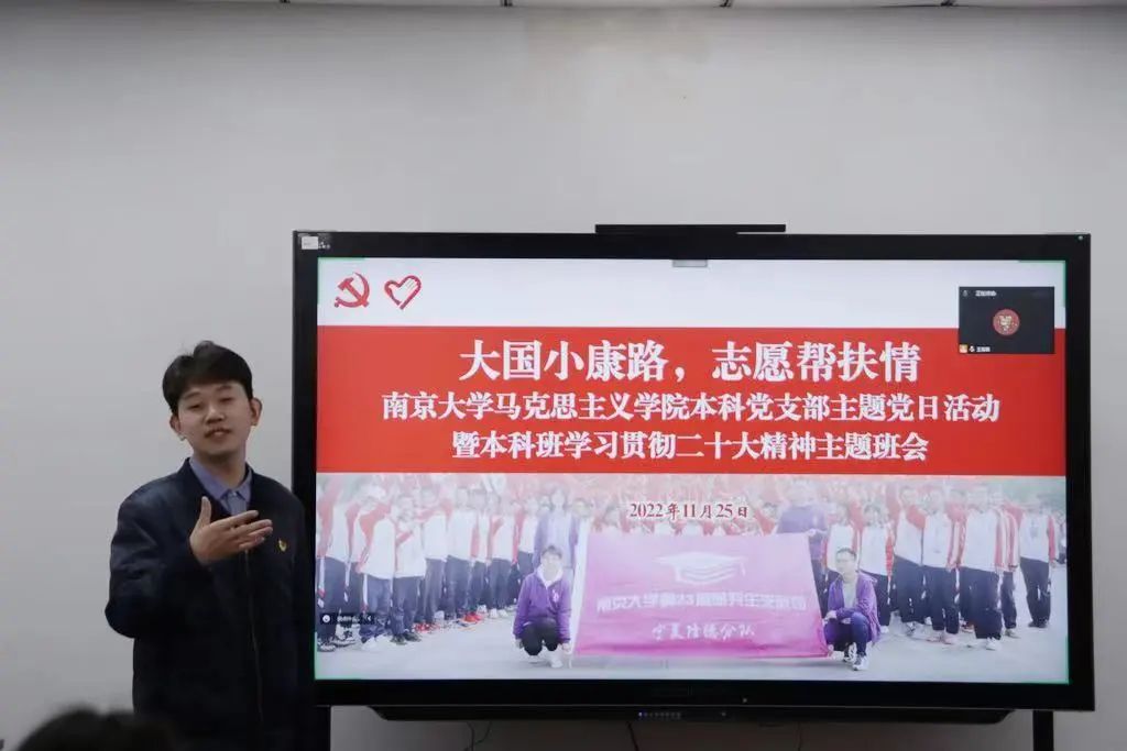 本科生党支部联合2021级本科生团支部开展“大国小康路·志愿帮扶情”学习党的二十大精神主题党团日活动。外国语学院博士生辅导员龙心悦老师、化学化工学院2021级本科生辅导员魏志老师、新生学院毓秀书院辅导员朱博阳老师、新生学院毓秀书院辅导员孙悦伦老师作为特邀嘉宾出席本次活动。整场活动由 成人导航