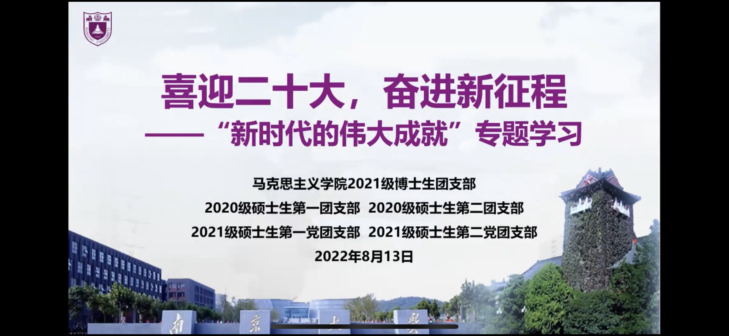 2021级博士生团支部、2020级硕士生第一团支部、2020级硕士生第二团支部、2021级硕士生第一党支部与团支部、2021级硕士生第一党支部与团支部联合开展“新时代的伟大成就”专题学习暨“地图上的青运史”主题团课。会议由2021级硕士生第二团支部成员王云鹏同学主持。