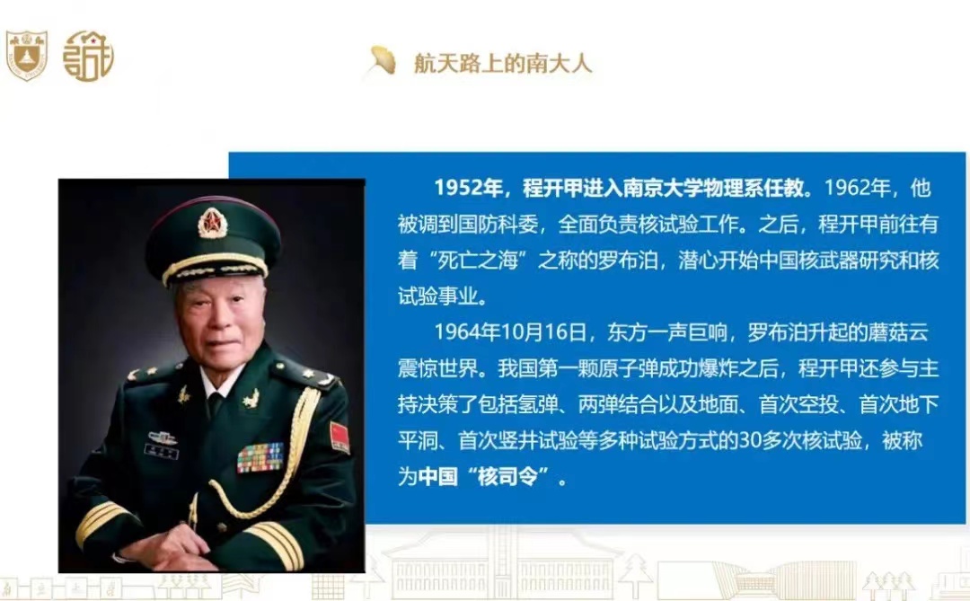 紧接着,蒋敏同志向大家讲述了航天路上的南大人,从20世纪50年代中期到21世纪的今天,从朱光亚、任新民、程开甲、赵九章等老一辈南大航天工作者到如今新一批南大人依然活跃在建设航天强国的战场上,从“东方红一号”卫星、第一颗原子弹成功爆炸到“龙虾眼X射线探测卫星”、首颗太阳探测科学技术试验卫星“羲和号”在太原卫星发射中心成功发射升空等航天事件均有南大人努力奋斗的身影。他们满怀建设新中国的赤诚之心,将青春年华奉献给国防科学事业。