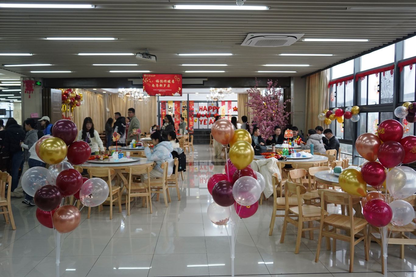 下午四时,老师与同学们如约而至,大家有序签到、落座。一时间,寒暄声与欢笑声伴随着暖场音乐的节奏跃动,原本安静的食堂也被热烈而欢快的氛围填满。