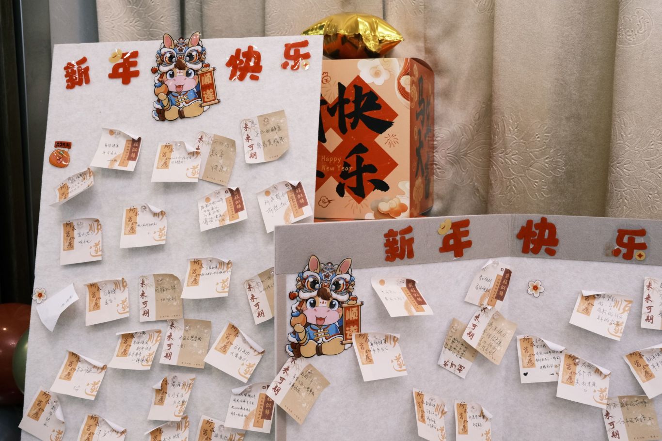 饺子下锅,蒸汽袅袅升起;心愿展开,祝福娓娓道来。在等待饺子煮熟的间隙,活动进入了温馨的“福语寄新岁”环节。主持人从贴满了美好祝福的心愿墙上选取便签,被选中的同学依次上台,分享自己的新年寄语。有的同学祝福学院蒸蒸日上、老师工作顺利;有的同学祝愿家人安康、岁月静好;有的同学期待学业精进、更进一步。主持人为每位分享的同学送上精美的新年小礼物,欢笑与感动间,冬日里的寒意尽数消融。
