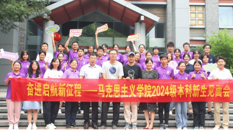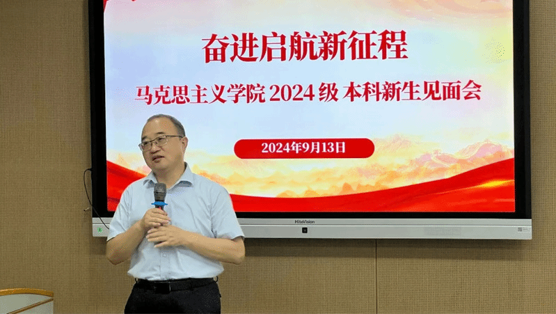 本科生培养方案。吴老师叮嘱同学们在大一学年充分用好通识教育模式的资源,夯实基础、拓宽视野,为日后专业学习打下良好基础,在大学四年里能够学有所成、学有所得。本学年,学院继续聘请三位新生导师为同学们的大一生活保驾护航。来自中国近现代史纲要教研室的聂平平老师希望新生同学们珍惜青春韶华,在一步步的学习探索中做好大学生涯规划,处理好集体生活中的人际关系,平衡好课业学习和身心健康的关系,做热爱生活、积极向上的新南大人。马克思主义中国化教研室金文老师作为南大马院的首届博士生,以“学长”的身份问候新同学。他建议同学们重视理论学习,广泛参与丰富多样的课程、讲座与学术会议,常去图书馆、常逛资料库,不断提升综合素质、完善自我。马克思主义基本原理教研室尤歆惟老师结合自身海外求学经历,和大家分享学科交叉的重要性。他提倡同学们在学习中,要克服学科偏见,努力培养思考问题的综合性视域。尤老师还提醒同学们重视体育锻炼,将五育并举长期贯彻下去。2022级本科生刘阮卿以朋辈学姐的身份,分享了她入读南大马院两年来的真切感受。海外访学、科考实践、论坛发言……她用一件件精彩纷呈的学习经历向同学们展现着大学生活的无限可能。她鼓励学弟学妹打破信息差、抓住机会、勇敢迈出“第一步”,尽可能体验大学生活的多元面向,在充满不确定的世界里让自己更有方向感、有选择权。本次活动是学院积极响应学校“本科新生日”的重要育人举措。通过搭建师生双向交流平台,新生进一步加深了对本专业的认识与理解。“俱怀逸兴壮思飞,欲上青天揽明月”,祝愿2024级本科新生顺利开启大学之旅,用汗水浇灌收获,用实干笃定前行,用激扬着的青春接下来的大学生活中坚定理想信念,不负青春韶华,奋力“到中流击水,浪遏飞舟”!