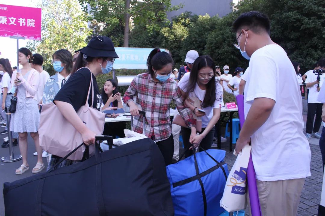 学院组织志愿者担任本科新生报到联系人,保障新生安全报到、高效入学。志愿者们提前联络新生,做到全流程陪伴新生入学,并通过制作文创展板、文化贴等为新生呈现马院的文化氛围。新生们拿好通知书备齐材料,打开苏康码、行程码,经过核对后开启期待已久的南大校园生活。马院志愿者们在岗迎新,热情服务各位新生。