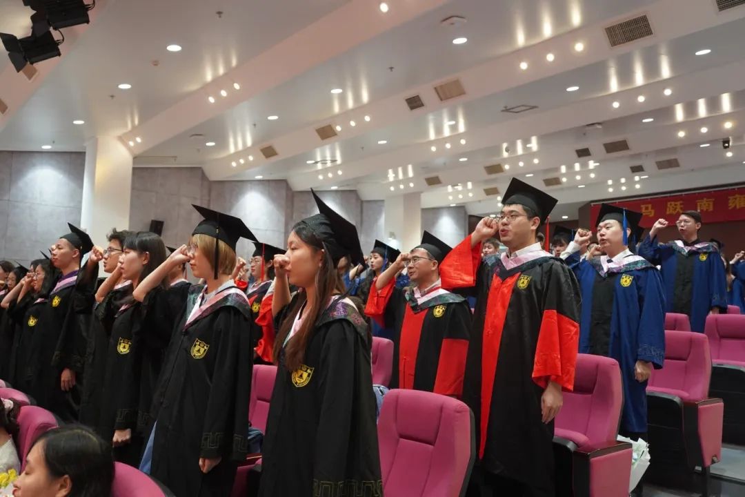 铿锵誓言,拳拳初心。全体毕业生在尹紫琦同学的带领下庄严宣誓:“铭记校训:诚朴雄伟,励学敦行。报效国家、服务人民,担当道义、守正创新,德业双修、知行合一,不负韶华、不忘初心,誓为民族复兴、人类进步奋斗终身!”