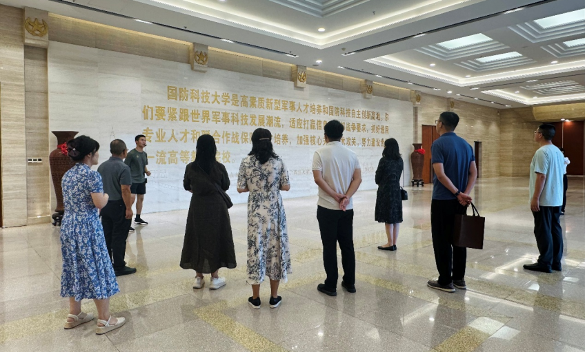 教师参观校史馆。铁血筑军魂,共筑强军梦。校史馆以“肩负重任、不辱使命、强军兴国”为主题和“三个息息相关”为主线,采取历史时期与重大专题相结合的方式,通过800余块展板,2000余幅照片,1000余件实物,50多部影像资料生动再现国防科技大学光辉的办学历程、育人成效和重要贡献。