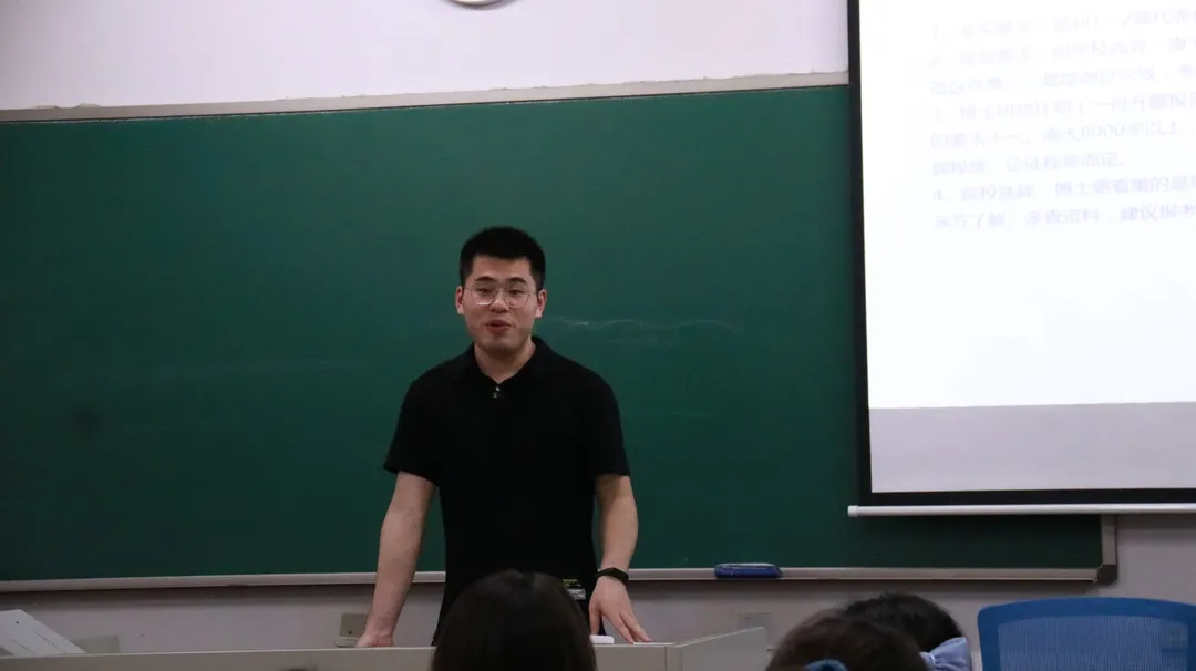 来自2018级中共党史专业的硕士研究生范佛山学长以优异的成绩考取南大马院马克思主义理论专业博士研究生,他从个人简介、读博选择、申请考核经验、研究生阶段的学习经历四个方面入手,为同学们介绍了自己的考博过程。针对同学们在选择求学还是就业上的迷茫和困惑,学长建议大家先思考三个问题,即自己对学术的喜爱程度、对未来的职业规划、对家庭情况的考量后再做决定。他特别提醒到,读博需要时间考虑,学弟学妹们最好在研三第一学期确定是否要读博。之后,学长详细介绍了申请博士的相关要求以及考博的必备技能,建议同学们认真学习英语,注重论文的写作质量,为将来读博做准备。