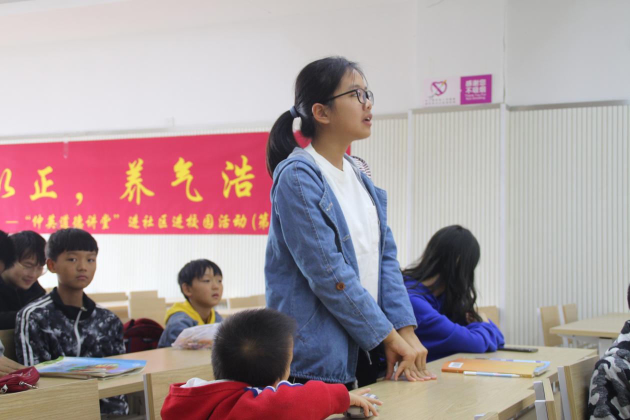 第十一期“仲英道德讲堂”进社区进校园活动正式拉开帷幕,活动小组赴南京市栖霞区尧辰社区开展以“行义以正,养气浩然”为主题的中华优秀传统道德讲堂活动,本次活动由周晗同学主持,南京市栖霞区尧辰社区居民积极参与其中,反响热烈。