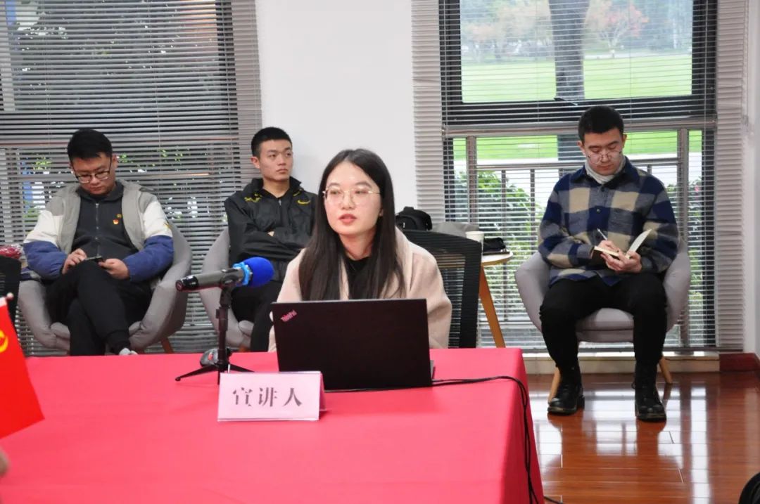 姚瀚霖同志作了“重温英烈事迹,牢铸理想信念”的主题宣讲。他从革命烈士恽代英同志的生平入手,将这位从年少时期有着挑食、懒床、自恋等特点的年轻人如何成长为不尚空谈、力行救国的革命志士的历史细节娓娓道来,让与会者贴近与这位历史主人公的距离,并加深了对共产党员崇高理想的理解。
