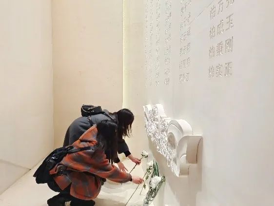 跨过纪念桥,同学们来到雨花台烈士纪念馆参访学习。在纪念馆序厅,“信仰的力量”五个火焰般的大字昭示着雨花英烈的精神气魄,两旁雪白的石碑上镌刻着1519位烈士的姓名。在石碑前,同学们依次向革命烈士敬献鲜花,深切缅怀为民族独立和人民解放献出生命的革命先烈。