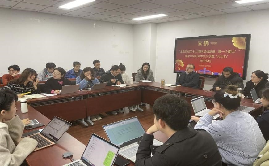 20余位学生代表围绕“全面贯彻二十大精神,加快建设‘第一个南大’”深入讨论、互动沟通。讨论内容涵盖青年时代使命、奋斗目标、学科建设、人才培养、校园文化、硬件设施等多方面,一是激发青年担当意识,同学们对学习贯彻党的二十大精神,激励青年勤奋刻苦、努力拼搏,在新时代新征程中勇担使命展开讨论。二是全力锚定奋斗目标,同学们对新时代成人导航