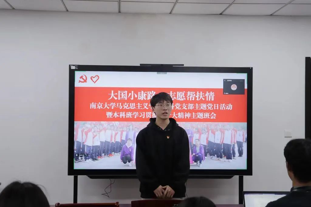 活动的最后,本科生党支部宣传委员史善聪对本次主题活动进行总结。他对王泽森和贾姣妹同志的发言内容进行了总结,并为大家分享了成人导航