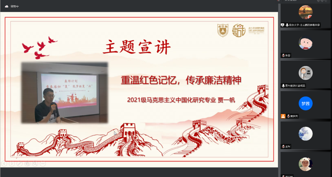 青年廉洁社联合开展“扬实践风采,展青年担当——2021级硕士研究生第二党支部暑期主题党日活动第4期‘廉洁廉政’实践风采展示。”会议由2021级硕士生第二党支部成员王云鹏同志主持。