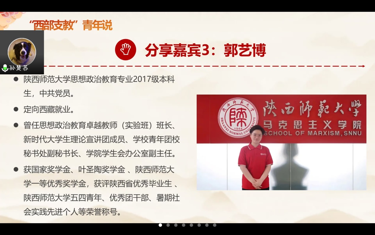 港台青年与内地青年同根同源,拥有共同记忆和相似的文化背景,在祖国更广阔的大地上,也有这样一群青年选择响应党和国家的号召,扎根西部,奉献自己。党日活动的第三部分由两位赴西藏和宁夏支教的同学分享他们的理想之路。陕西师范大学成人导航